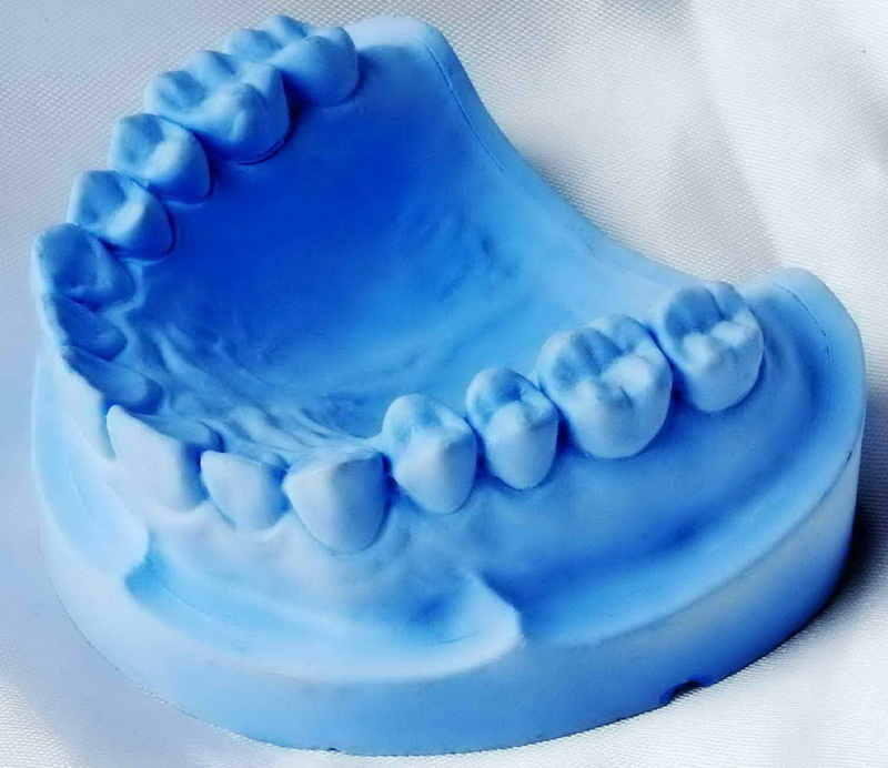 (3)石膏模型強度要高,在脫模時,有倒凹基牙、或帶金屬修復(fù)體時,不至于折斷。
